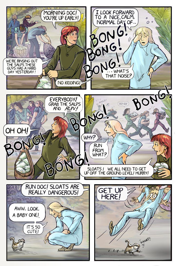 I plan to insert another page or two with environmental art before this "first page" to show the setting. Haven't done it yet.
