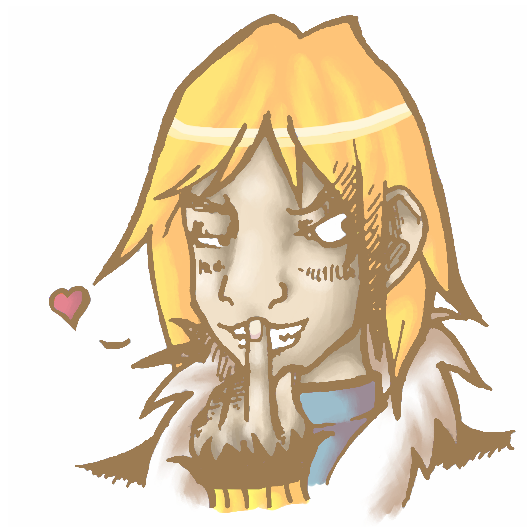 I made this a while back to use as an icon (smaller!) for those rare times I rememeber I'm supposed to be playing him over at desperatefans. Actually, I think I was going to make a series of these-- Nemian emoticons, or whatever. I think I've even got another one inked somewhere that I just need to color. Hmm...